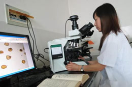 标本固定:选下列固定液固定:70%酒精或5%-10%福尔马林溶液。将固定后的标本放在玻片上,滴一滴10%氢氧化钾溶液,放在酒精灯上略加热,显微镜观察。